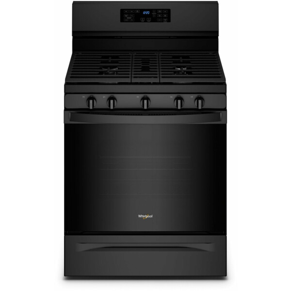 30" 5.0 cu. ft. 5-Burner Freestanding Front Controls Gas Range with 5-in-1 Air Fry Oven in Black